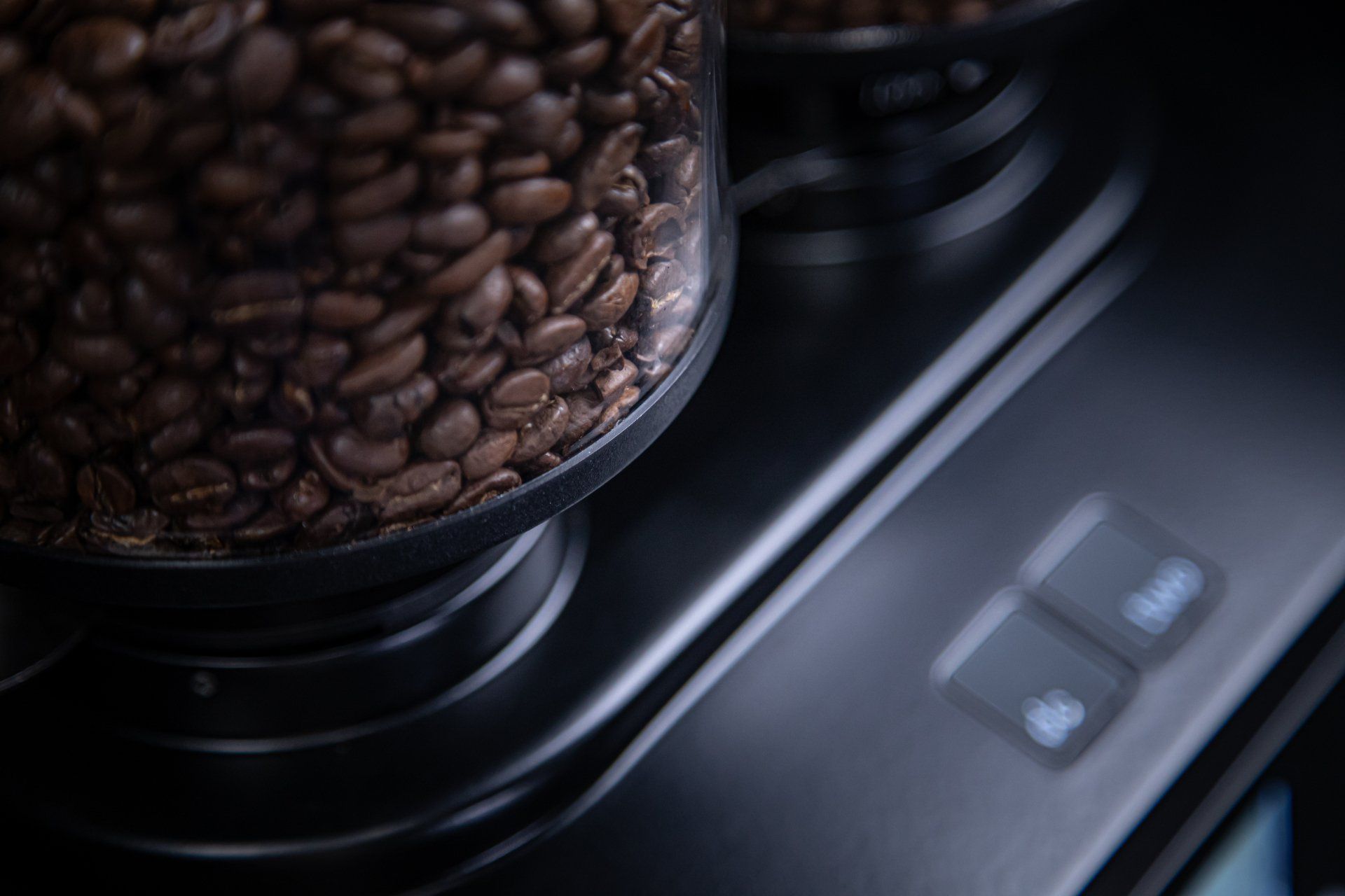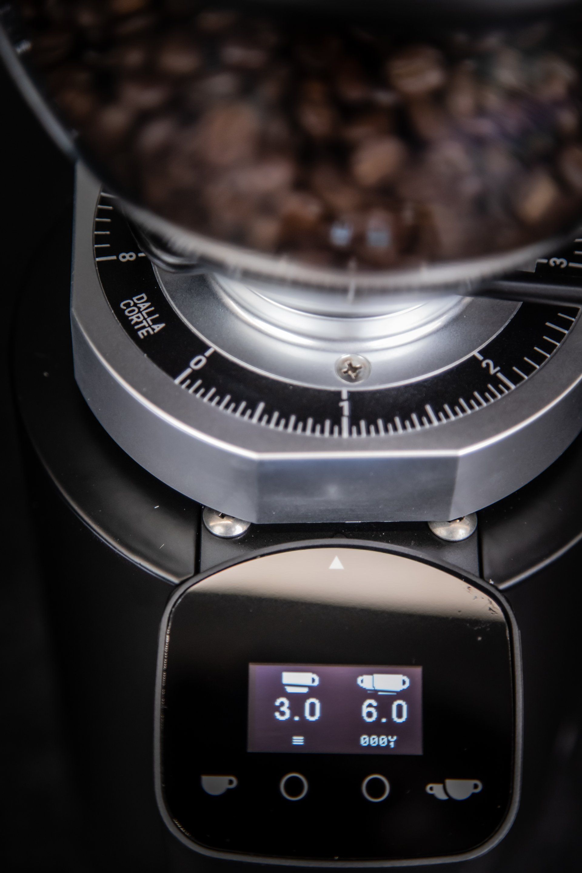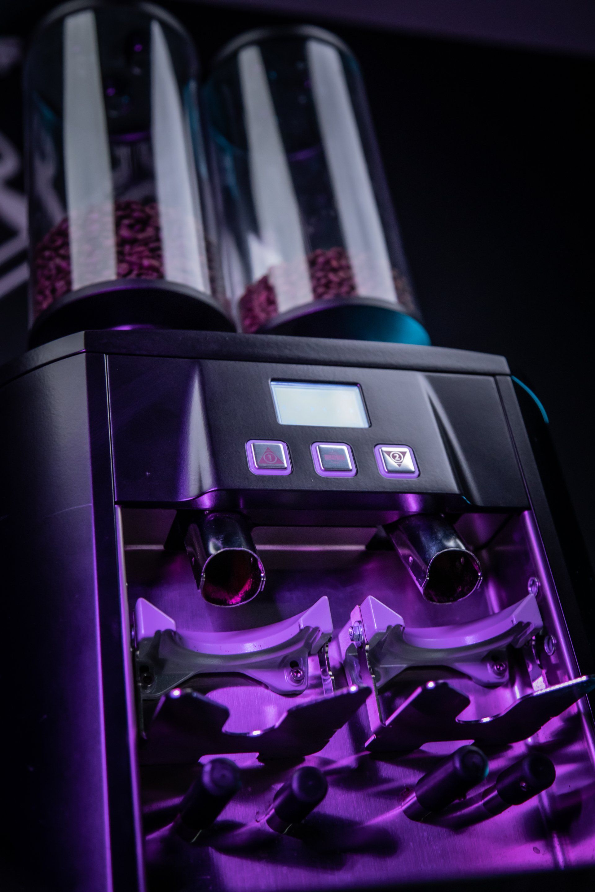 Apparecchio altamente tecnologico, si compone di macine piane da 65 mm, e un dosatore a due campane, che permette di ottenere anche due varietà di caffè contemporaneamente, per chicchi macinati a regola d'arte.